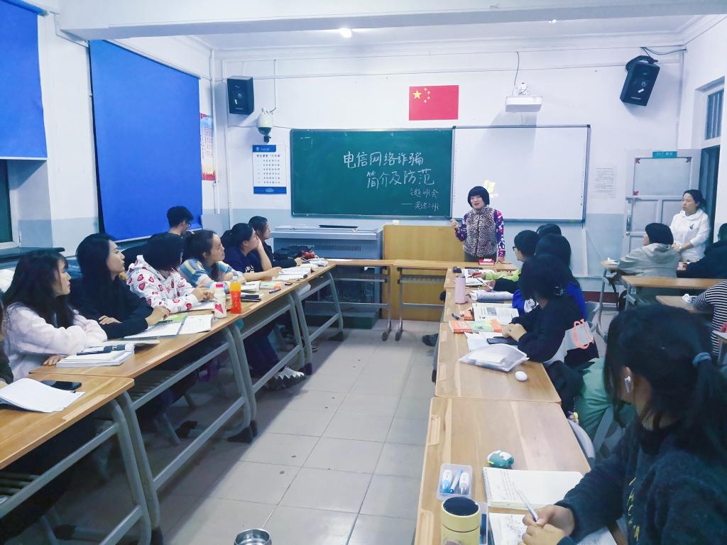 为进一步推进党史学习教育各项部署落地见效,努力完善学院党总支、支部、党员三位一体党建工作体系,落实《外国语学院领导干部联系实施办法》,11月4日至10日,外国语学院领导班子深入各个班级,参加防诈骗安全教育主题班会,并针对最近发生的校园网络诈骗事件,和同学们展开讨论,分享 “防网络诈骗提示”。