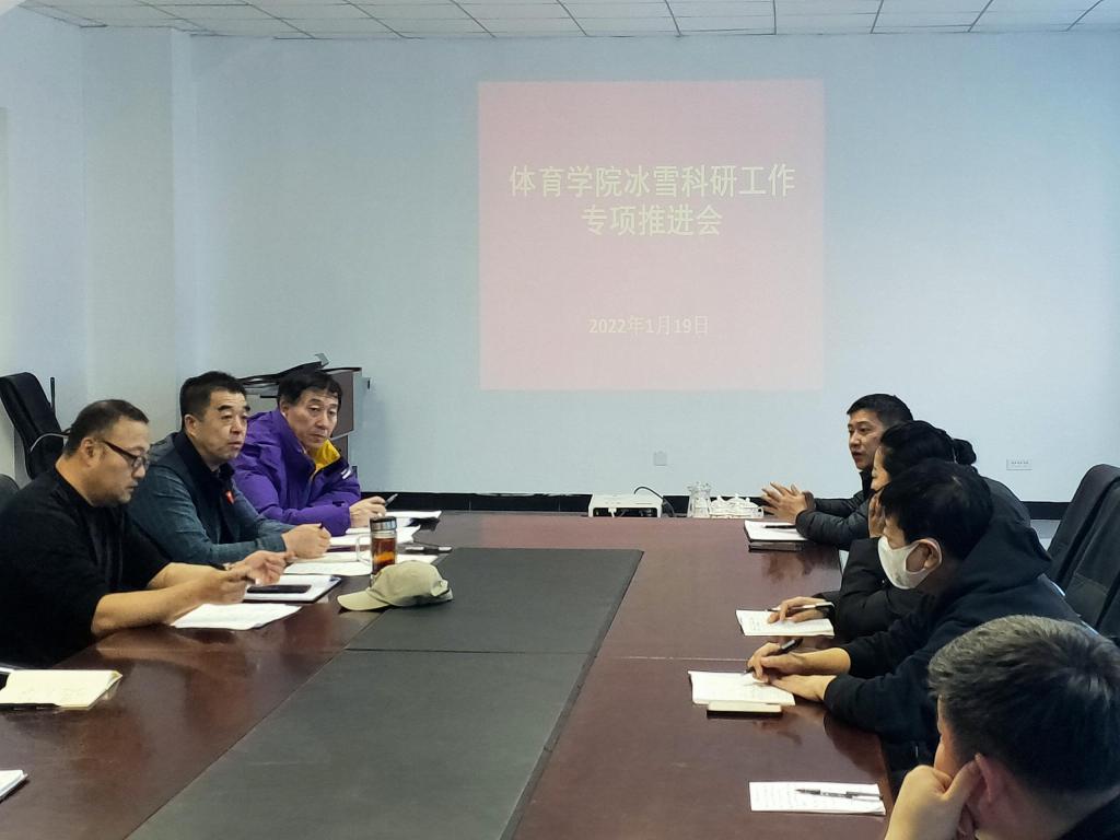 为深入落实学校重大科研项目计划的拟定工作,1月19日上午, 体育学院院长李晓峰组织本院冰雪科研团队成员,在东山体育馆二楼会议室召开了“体育学院冰雪科研工作专题研讨会”。