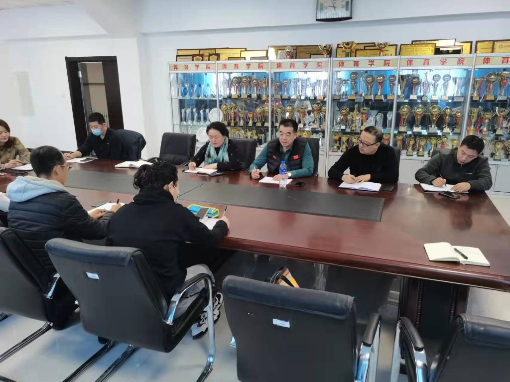 随后,林剑东副院长针对体育学院专业课及公共体育课线上教学方案制定、金龙山滑雪场教学现状及后续课程调整都逐一做出了说明和分工落实。