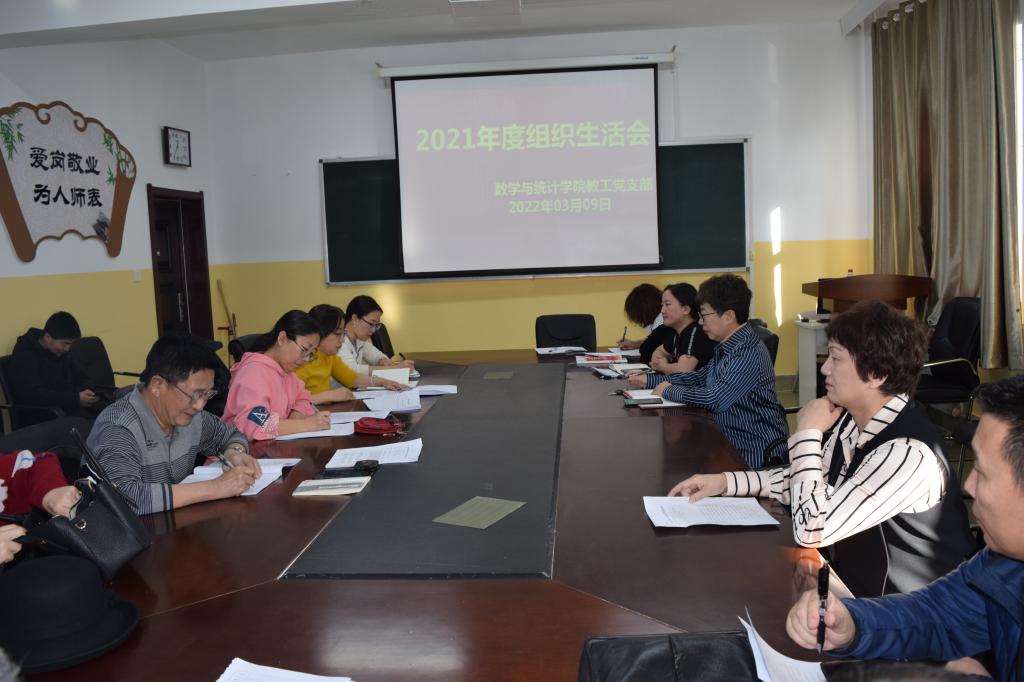 3月9日下午,数学与统计学院教工党支部在笃学楼410会议室组织召开了2021年度组织生活会。会议由支部书记杨贵玉主持,全体教工党员参会。