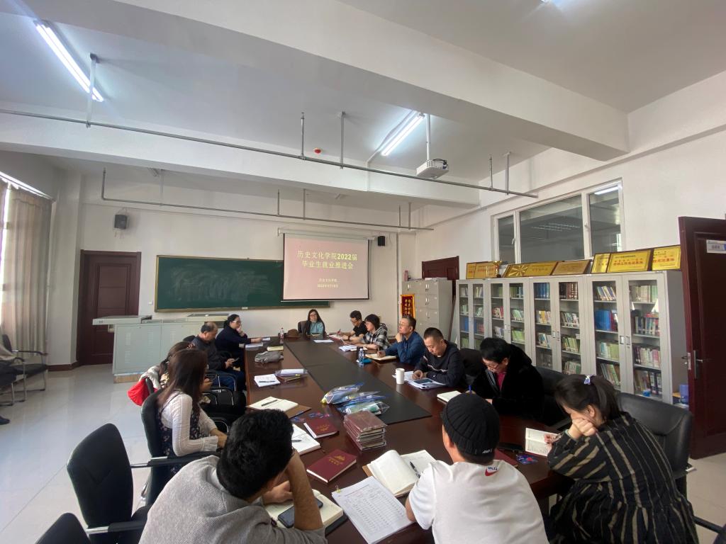 为贯彻落实全国“两会”精神,落实bat365官网2022届毕业生就业工作推进会精神,推进历史文化学院2022届毕业生就业工作,3月16日,历史文化学院召开2022届毕业生就业工作推进会。历史文化学院党总支书记梁云,院长乌日图,党总支副书记韩治平,副院长赵金辉出席会议,各科室人员,全体毕业生班辅导员、班主任、任课教师参加了会议。