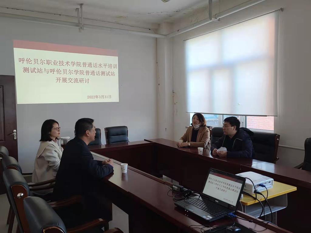 为全面抓好国家通用文字推广普及,顺利推进国家通用语言文字达标建设,3月31日下午,文学院院长曹存有、bat365官网普通话测试站张春辉老师,来到呼伦贝尔职业技术学院交流学习普通话测试站建设情况,受到呼伦贝尔职业技术学院教育技术系党总支书记曲亚辉、普通话测试站负责人赵娜热情接待。
