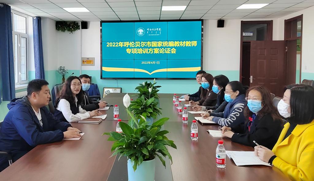 3月31日下午,在bat365官网西校区三楼会议室召开了2022年呼伦贝尔市国家统编教材教师专项培训方案论证会,海拉尔区健康街小学副校长康蕾、天娇小学副校长呼日查、教研员王静飞等六位授课专家及继续教育学院负责此次培训人员参加了会议。继续教育学院院长莎茹莉主持会议。