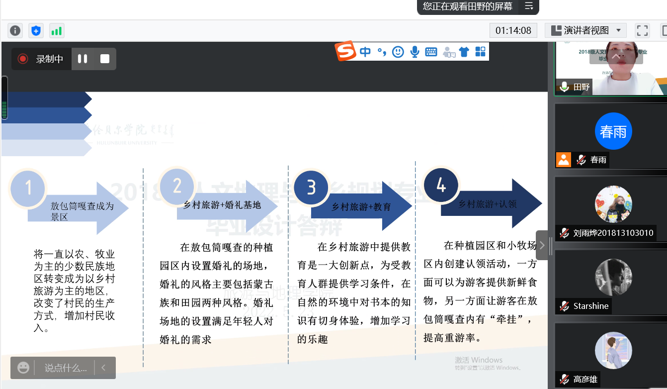 本届毕业论文(设计)答辩工作秩序井然,各答辩小组教师严格把关,对学生们的毕业论文(设计)写作的规范性、创新性、理论知识、专业知识和表达能力给予点评和建议,使每位学生认识到自己毕业论文(设计)中的不足,对于毕业生综合能力的提高具有重大作用。旅地学院2022届本科生毕业答辩在指导教师、答辩教师和毕业生的积极配合下圆满完成。愿我院学子以此次答辩为契机,保持高扬拼搏斗志,锐意进取,奋发图强,扎实学术本领,不断提升自我。