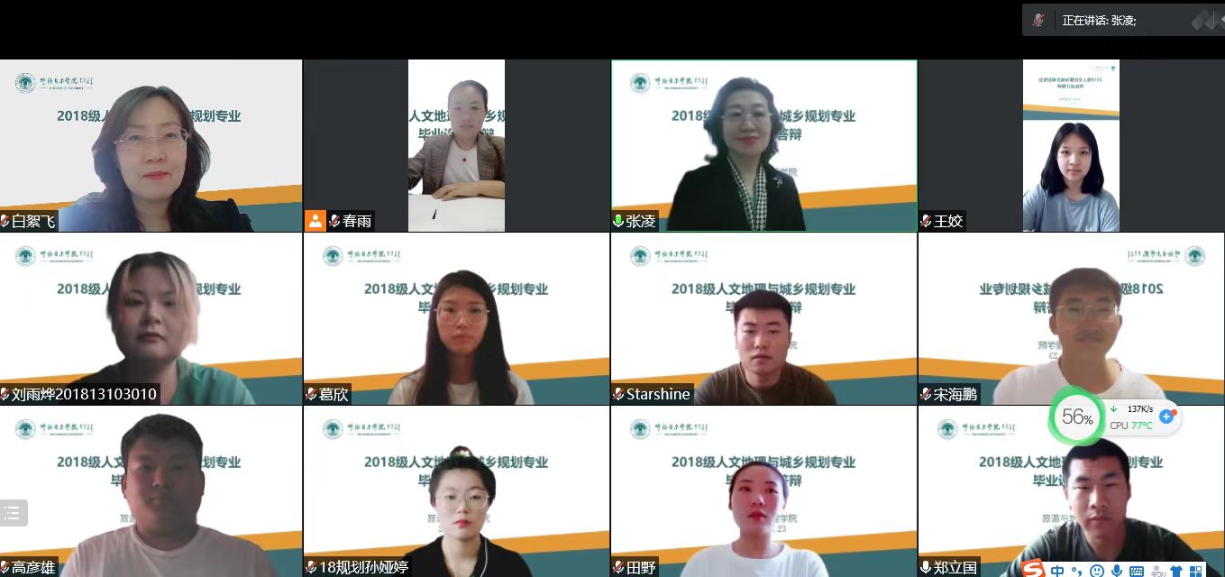 根据人才培养方案要求及《bat365中文官方网站本科毕业生论文〈设计〉管理规定》,旅地学院在教学院长及各系室主任的安排下,于5.22-5.24日开展并圆满完成了2022届共计195名本科生的毕业论文(设计)线上答辩工作。本次毕业论文(设计)共分为12个答辩组,每组3名答辩老师,共有18名教师参与此次答辩工作。各答辩小组通过听取学生线上汇报、教师提问、学生答辩等环节为本届毕业生的论文(设计)质量把关。