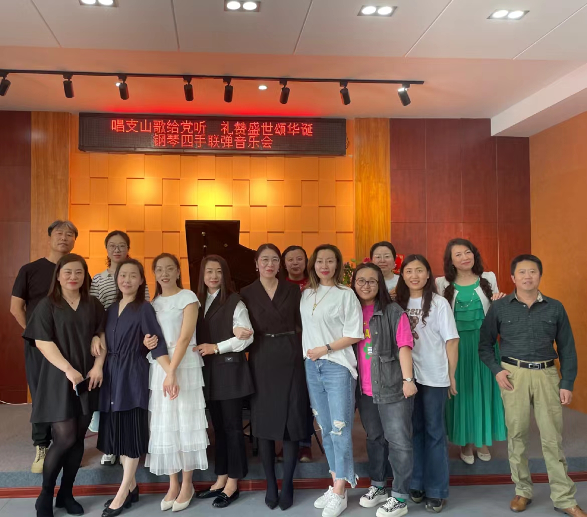 6月15日下午,音乐与舞蹈学院钢琴系举办了“唱支山歌给党听,礼赞盛世颂华诞——钢琴四手联弹云端音乐会”。各年级学生和老师在抖音直播间和现场进行观看音乐会。