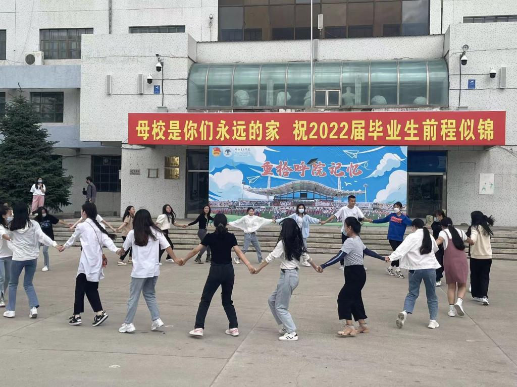 一场集体舞。6月13日,教育学院2022届毕业生们再一次伴着熟悉的音乐,踏着熟悉的舞步,重温民族民间舞,重拾最难忘的呼院记忆。