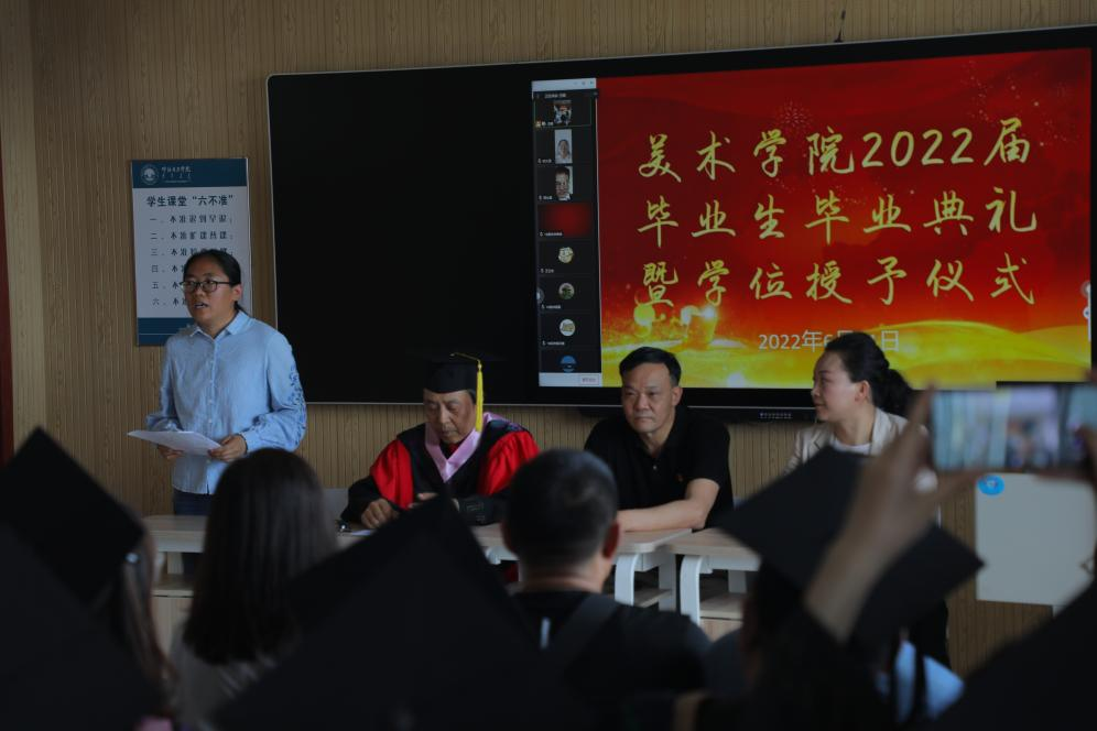 6月21日,美术学院在综合楼五楼智慧教室举行2022届毕业生毕业典礼暨学位授予仪式,仪式线上线下同步进行。
