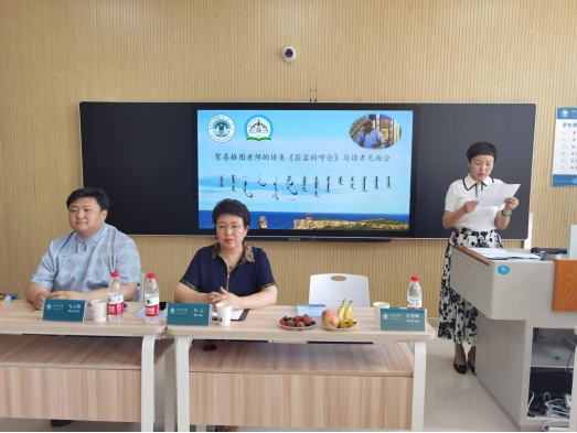 6月29日下午,蒙古学学院贺喜格图老师的诗集《蔚蓝的呼伦》见面会在崇文楼B402举行。