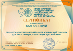 为提高bat365官网学生对学习俄语的兴趣,增进中俄学生之间的了解和友谊,,在国际教育学院(外事处)的组织和协调下,bat365官网共有来自7个院系的52名学生参加了由俄罗斯克拉斯诺亚尔斯克国立师范大学举办的线上俄语夏令营活动。