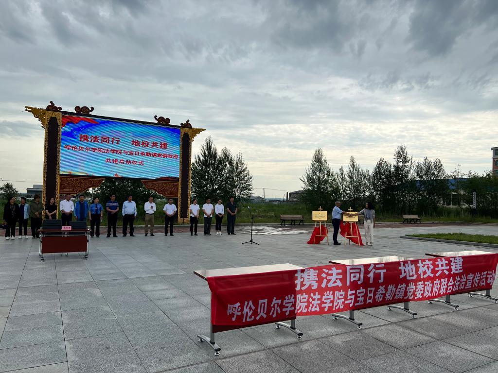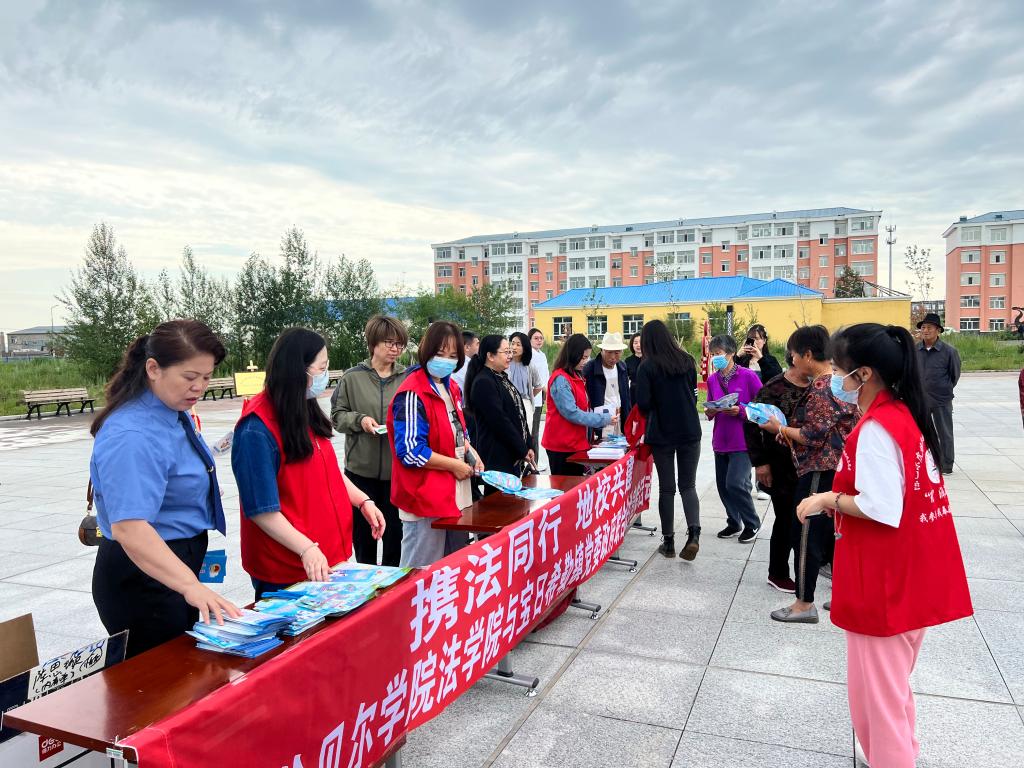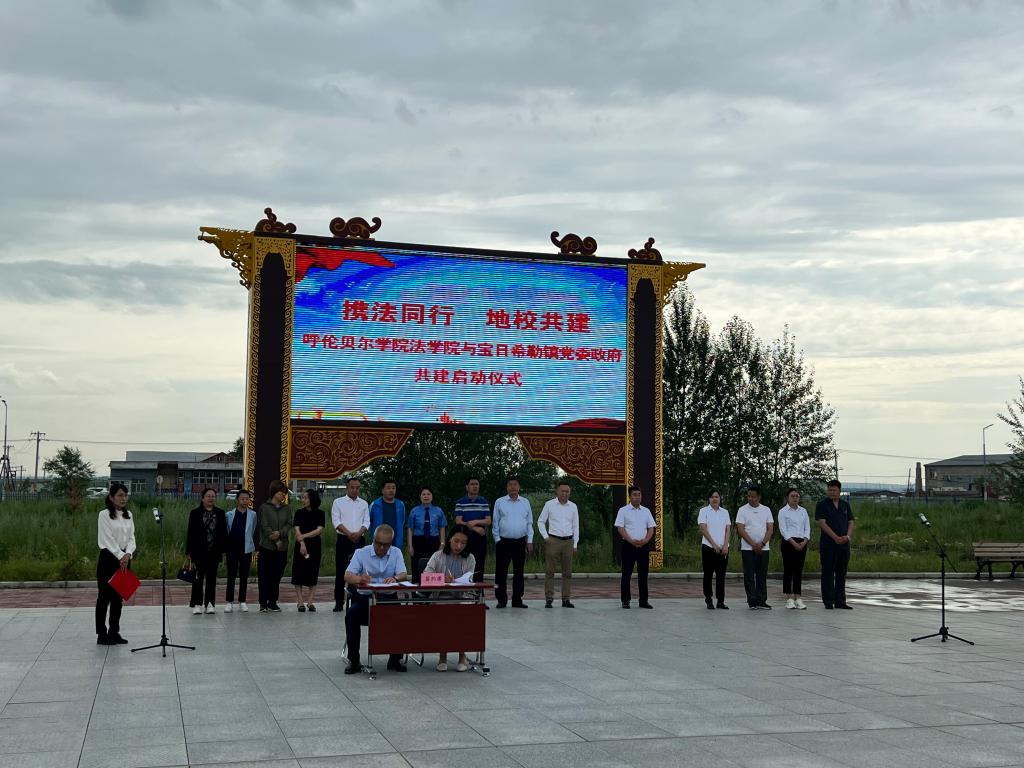 为了促进政府法治工作与法学教育实践有机结合,提高人才培养质量,充分发挥双方的资源优势,7月12日,法学院领导班子带领法学院部分教师前往宝日希勒镇政府签订共建协议书、融合党建协议书,共同面向社区居民开展普法活动。
