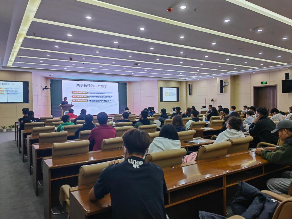 为深入推进学生就业指导工作,切实开展为学生办实事活动,9月19日晚在崇文楼A201会议室,体育学院团总支、学生党支部特邀教育学院心理学博士张微老师举办“如何才能成为一名教师”的专题讲座,为2023届即将毕业的学生开展实习动员和就业指导系列工作。党总支书记李伟艳主持,学生党支部书记及2019级50余名体育教育专业学生参加。