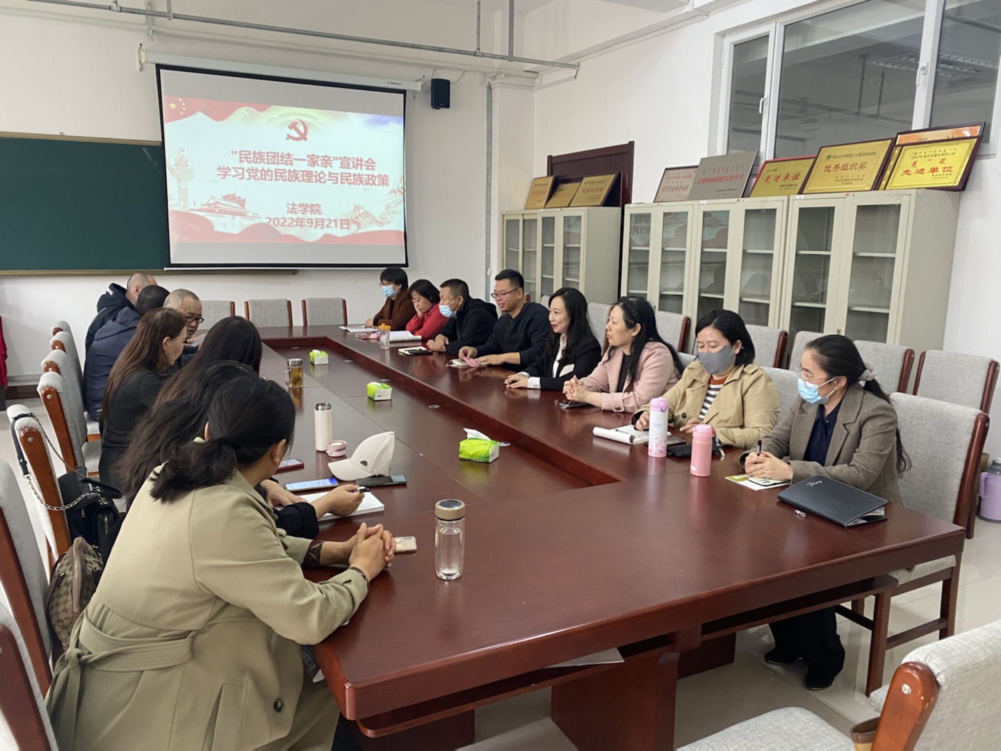 9月21日下午,法学院在崇文楼B座428会议室开展民族理论和民族政策专题学习会,会议由党总支书记苏杰主持,全体教师参加。