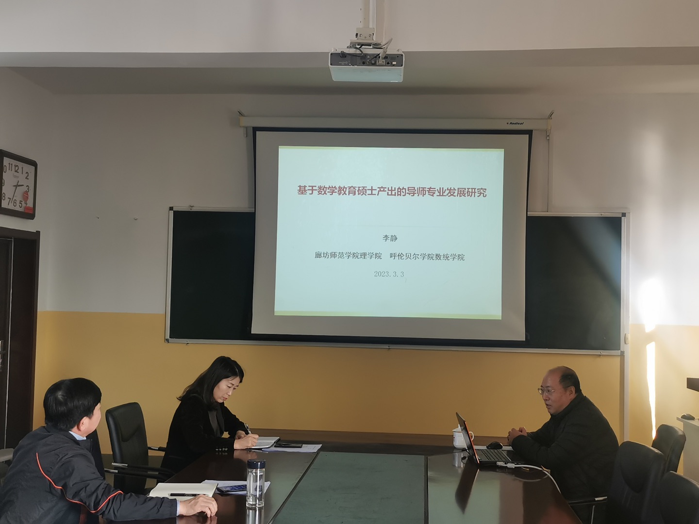 3月4日下午,数学与统计学院邀请廊坊师范学院李静教授在笃学楼410与学院教师进行座谈。座谈会由学院院长张桂芝主持。