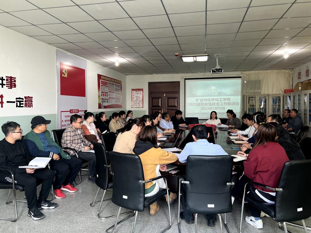 5月10日下午,矿业与化学化工学院在科技楼422会议室组织召开2023届毕业生就业工作推进会。会议由学院党总支书记张阳主持,院长郭文彬、党总支副书记毕瑞金、副院长敖日格乐及全体教职工参会。