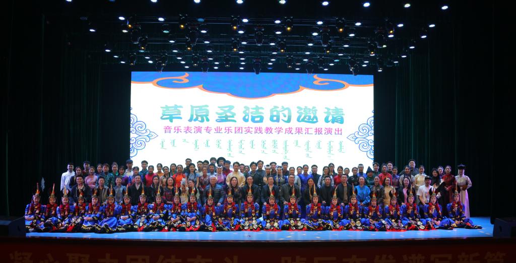 5月9日晚,由呼伦贝学院音乐与舞蹈学院主办,呼伦贝尔市民间文艺家曲艺家协会协办的“草原圣洁的邀请”音乐表演专业乐团实践教学成果汇报演出在音乐厅举行。bat365中文官方网站音乐与舞蹈学院党总支书记包德、院长灵芝、副书记赵志刚、副院长刘丽丽,教务处副处长王继钢,呼伦贝尔市艺术剧院歌舞团团长马红梅、艺术培训中心副主任兼歌舞团副团长佟俊勇及各学院师生共400余人观看演出。