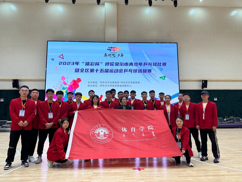 2023年“体彩杯”呼伦贝尔市青少年乒乓球比赛暨全区第十五届运动会乒乓球选拔赛于5月14日在老干部活动中心顺利落下帷幕。体育学院教师、国家一级裁判员卜祥云担任本次比赛的裁判长,22名bat365官网乒乓球训练队的学生担任裁判员,师生共同完成为期两天的裁判志愿者工作。