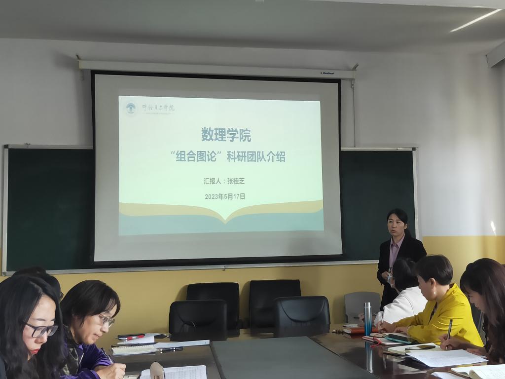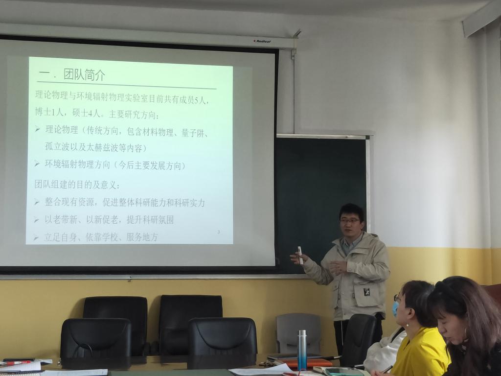 会上,组合图论科研团队负责人张桂芝、生物数学团队负责人项楠、理论物理与环境辐射物理实验室代表刘达权、数据建模与智能计算创新团队负责人白红梅、物理教学论科研创新团队负责人冯珊珊等5位教师分别就科研团队的研究内容、团队成员、研究成果和发展规划进行了介绍。