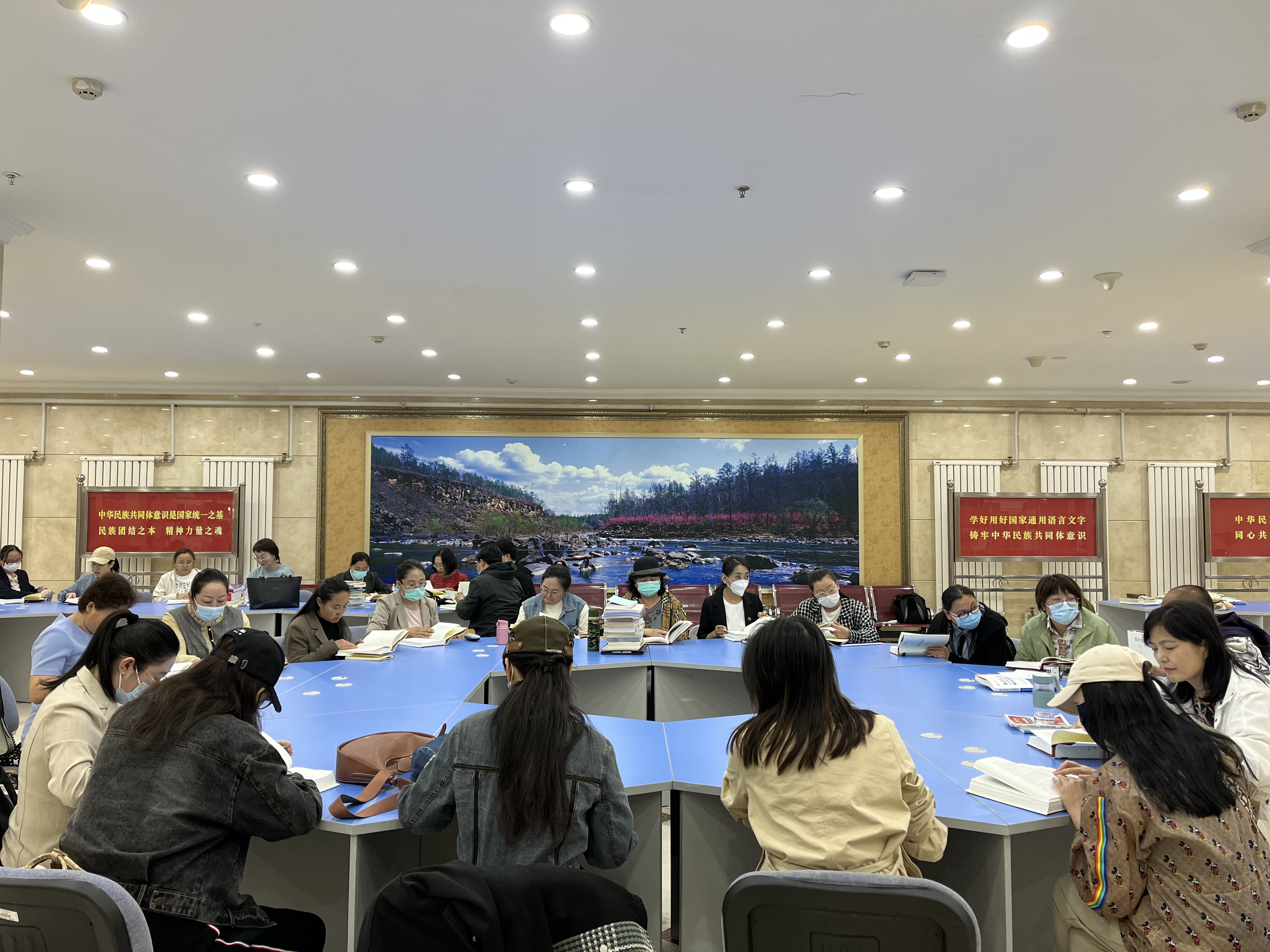 为促进思政课教师读原著、学原文、悟原理,感悟思想伟力,凝聚奋进力量,5月31日下午,马克思主义学院在图书馆举行《复兴文库》研学集体备课活动。本次活动由学院院长吴秀芳主持,全体思政课教师参加。