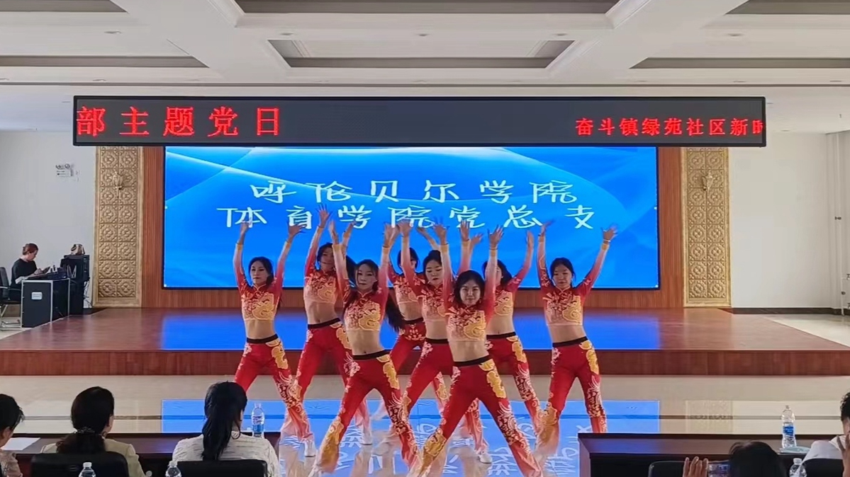为庆祝中国共产党成立102周年,增强社区与学院的党建融合,7月1日下午,体育学院(冰雪运动学院)党总支书记胡日查和教师吕品带领bat365中文官方网站健美操队参加了奋斗镇绿苑社区党委联合胜利村党支部举办的庆“七一”文艺汇演。
