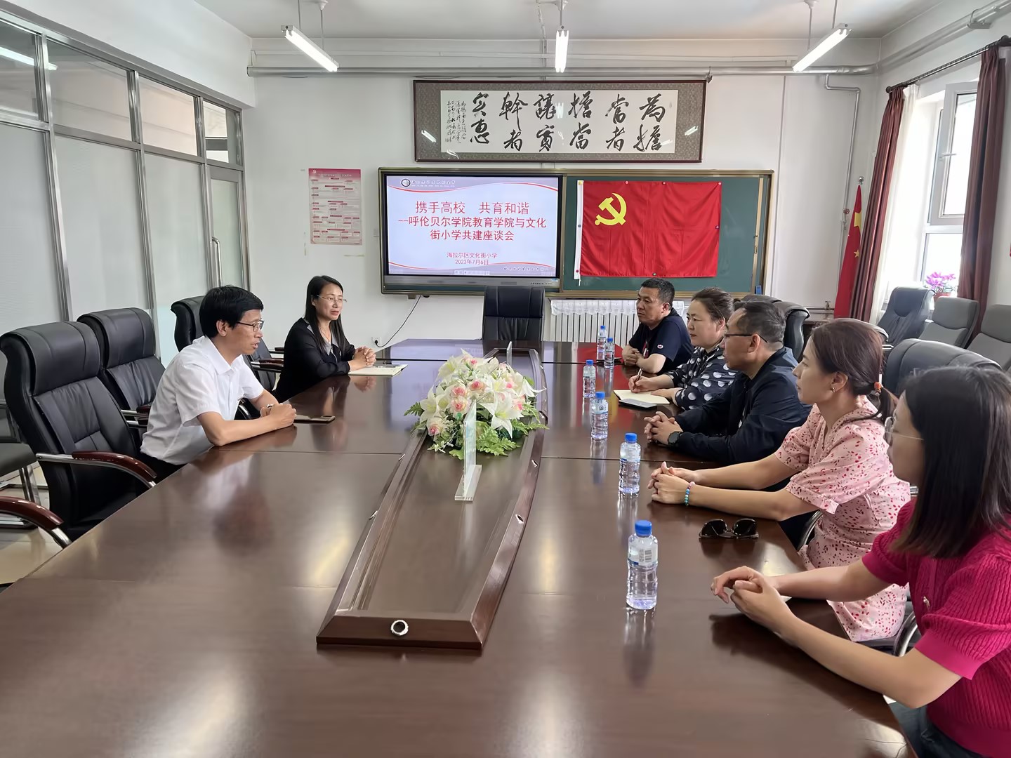 海拉尔区文化街小学校长王庆伟介绍了文化街小学的校园文化、办学理念、办学特色、课程建设、教学管理等学校基本情况,并希望通过交流互动,共同开拓发展空间,实现人才共育和合作共赢。随后,双方共同参观了学校。