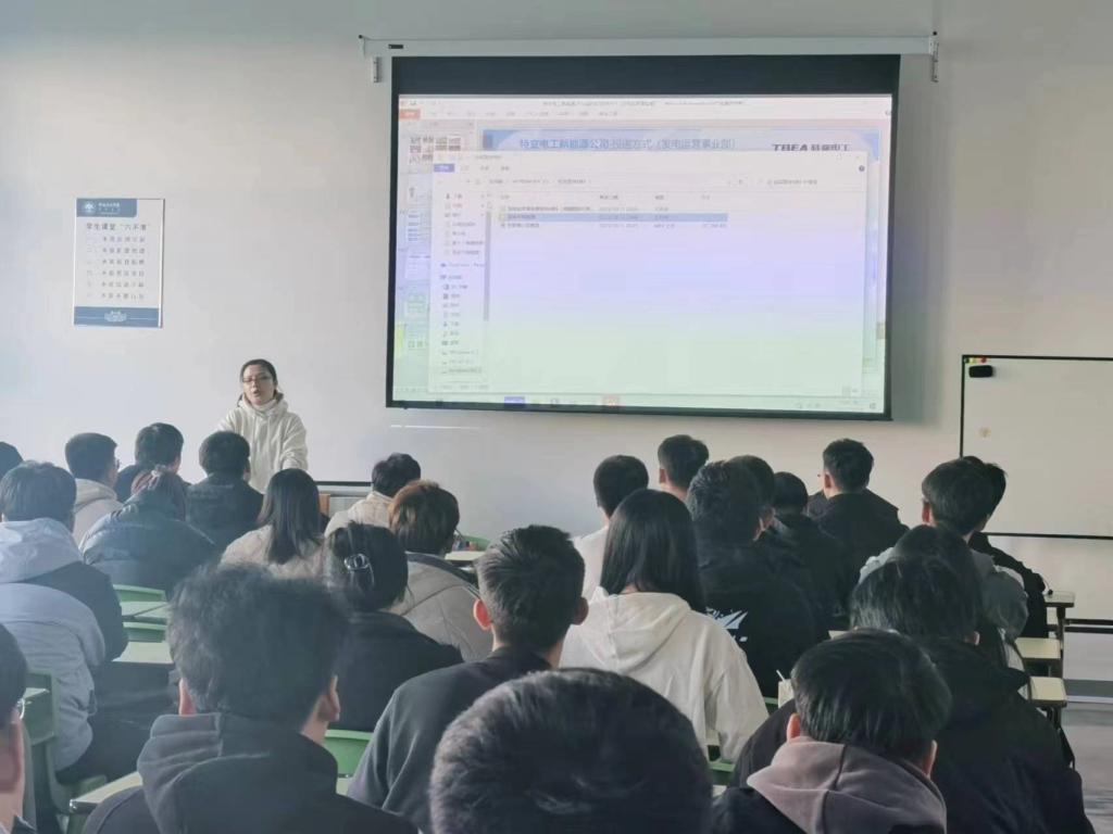 10月18日下午,工学院在行知楼C521教室召开专场招聘会,会上邀请特变电工新疆新能源股份有限公司人力资源部经理冯烨一行2人参加。会议由学院党总支副书记吴晗主持。2024届毕业生100余人参加了招聘会。