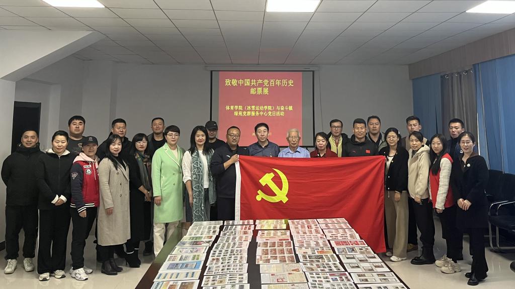 主题教育|体育学院(冰雪运动学院)与奋斗镇绿苑党群服务中心开展“致敬中国共产党百年历史邮票展”主题党日活动