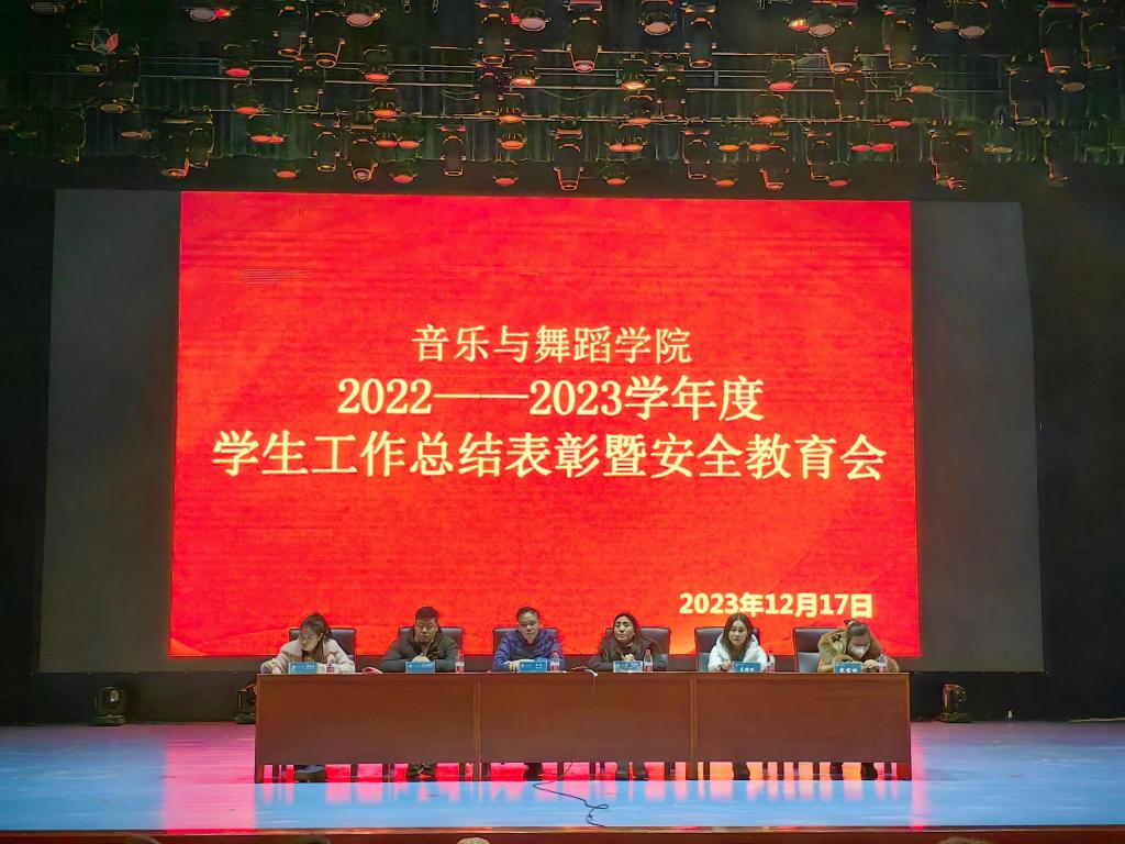 12月17日,音乐与舞蹈学院在艺术楼音乐厅召开学院2022—2023学年度学生工作总结表彰暨安全教育会。学院领导班子成员、团学办、辅导员以及全体学生均参加了会议。会议由团学办主任白音吉呼楞主持。