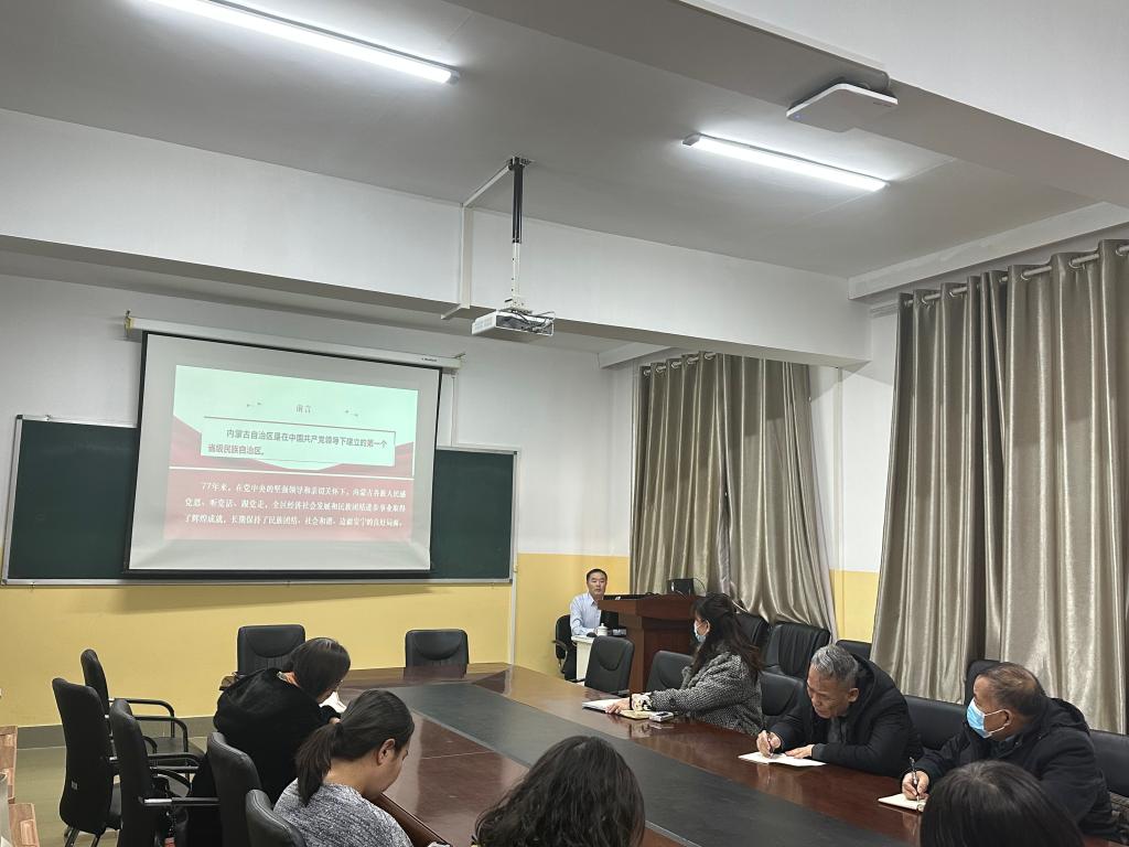 1月3日,数理学院邀请校宣讲团成员、马克思主义学院海龙教授在笃学楼410会议室进行“感党恩、听党话、跟党走”主题宣讲。活动由学院党总支书记杨巧智主持,全体教职工参加。