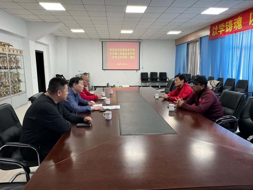 1月12日下午,首都体育学院博士生导师、国家体育总局重点实验室主任、国家体育总局奥运科技专家、国家体育科学研究所特聘研究员吴昊教授一行在bat365官网体育学院(冰雪运动学院)调研学院领导班子成员、环节干部及各系部主任参加调研座谈会。