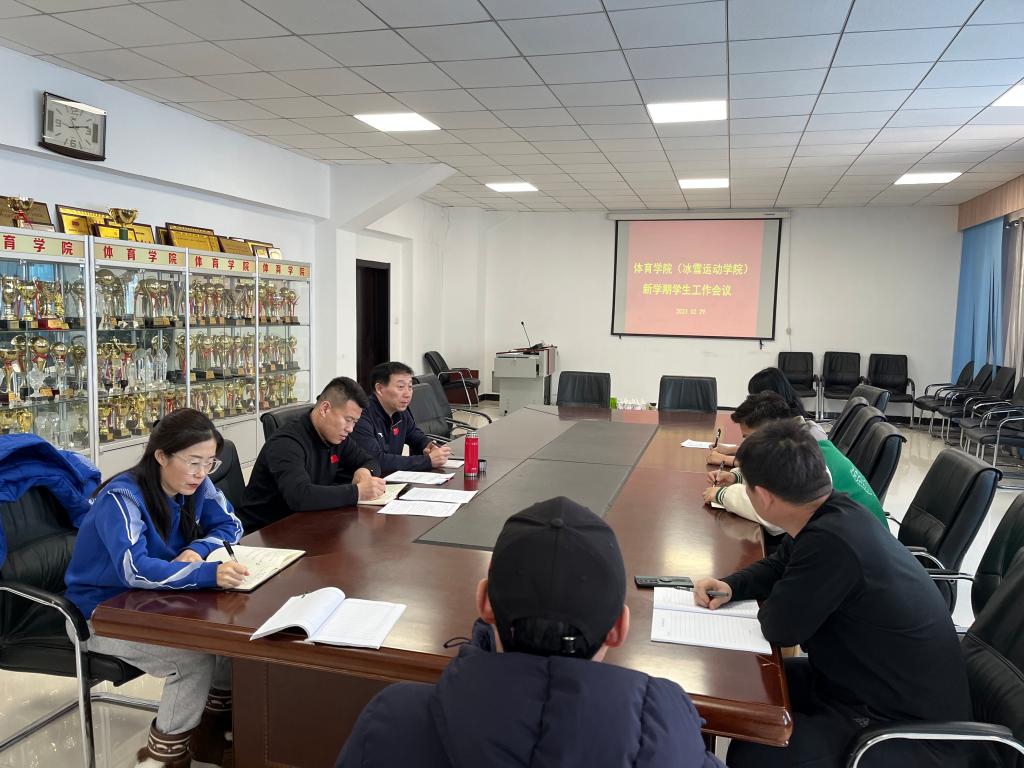 2月29日,体育学院(冰雪运动学院)在东山二楼会议室召开新学期学生工作会议。学院党总支书记胡日查毕力格、副书记凌占一,团学办公室所有教师及辅导员参加了会议。