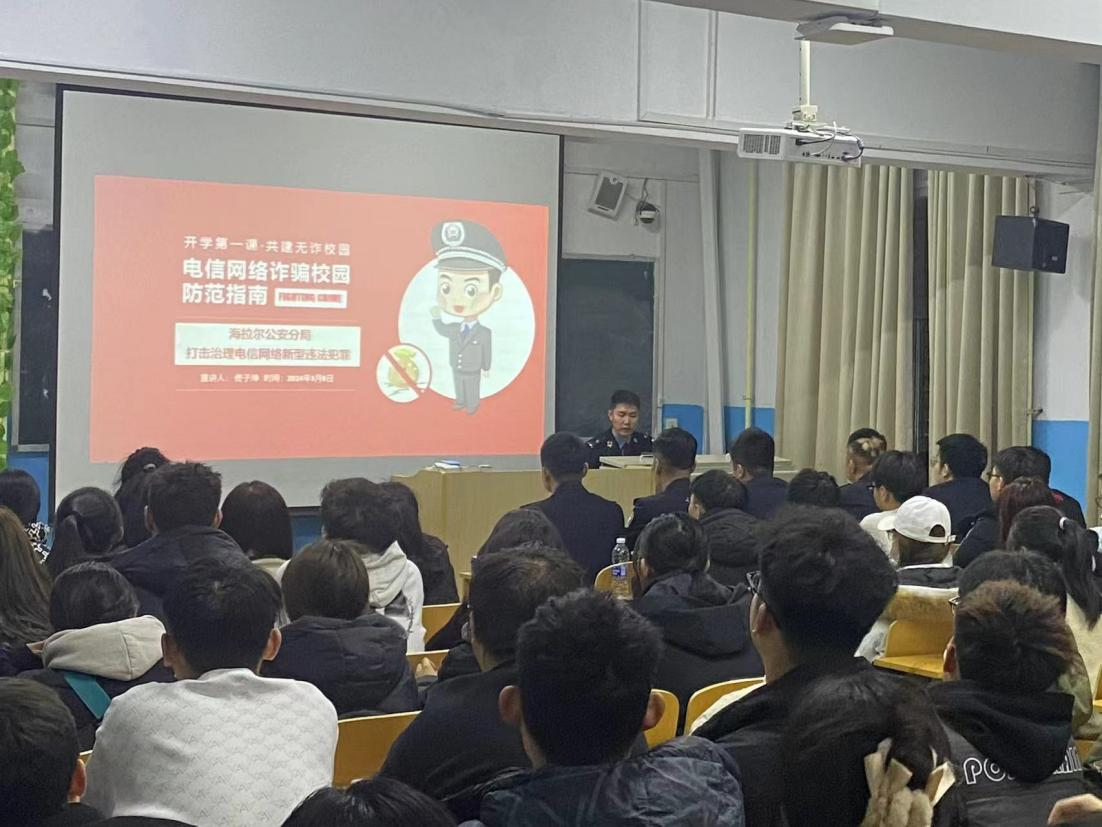 为提高大学生识别和防范电信网络诈骗安全意识,着力打击治理电信网络违法犯罪行为,营造安全和谐的校园环境,3月8日晚,海拉尔公安分局刑警大队副大队长王一鸣、反诈探组民警佟子坤等一行7人应邀来到数理学院开展电信网络诈骗安全防范宣传活动,学院近百名大学生参与了本次活动。
