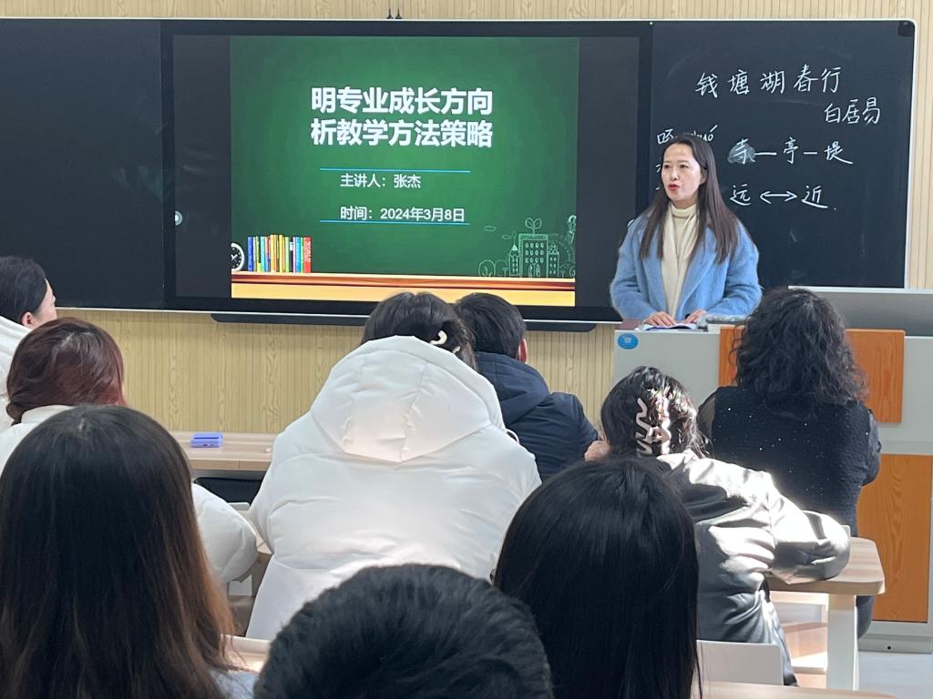 张杰根据2024届毕业生就业和教育实习情况出发,从做最好的自己、新时代教师的使命担当和“‘三做’即做优秀教师、做优秀语文教师、做优秀班主任老师,‘两控’即要求控制好自己的时间和情绪”等方面进行了精彩分享。从教学方法、教育理念等多方面阐述了语文学科的相关问题,她强调新时代教师应担当好时代重任,坚持“三个牢固树立”“四个相统一”,真正做到学生锤炼品格、学习知识、创新思维、奉献祖国的引路人。