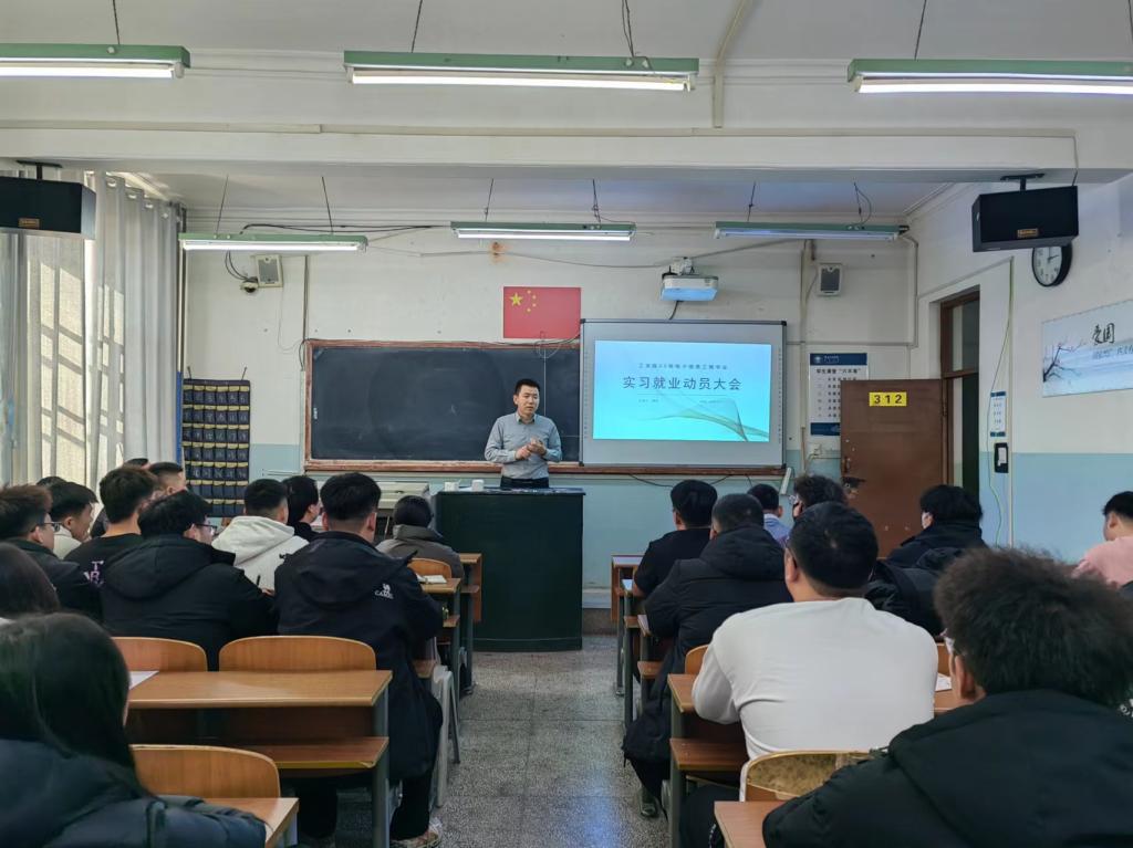 吴淘锁结合目前全国大学毕业生的就业形势及电子信息行业的发展态势,简要介绍了学院2024届电子信息工程专业毕业生开展实习的必要性和紧迫性,并结合学院历届电子信息工程专业毕业生实习就业的实际案例,鼓励学生们积极参加实习,抢抓当前毕业生通过有序实习而获得优质工作的关键期,从而实现高质量就业。