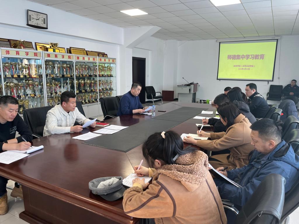 3月13日下午,体育学院(冰雪运动学院)组织开展师德师风集中学习教育。学院院长李晓峰、党总支副书记凌占一及全体教职工参加了学习。