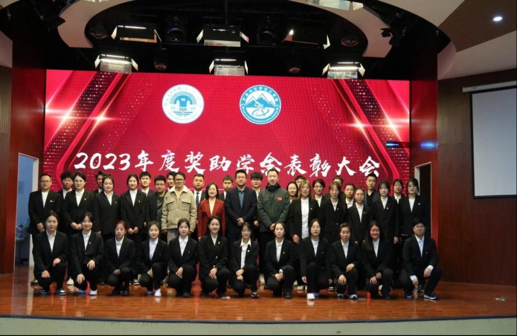 敖岩辉宣读了2022-2023学年国家奖学金、自治区奖学金、乌兰夫奖学金、勤则通奖助学金、筑梦奖学金、国家励志奖学金、自治区励志奖学金获奖名单。获奖同学代表依次上台领奖,参会领导和教师们为获奖学生颁奖。