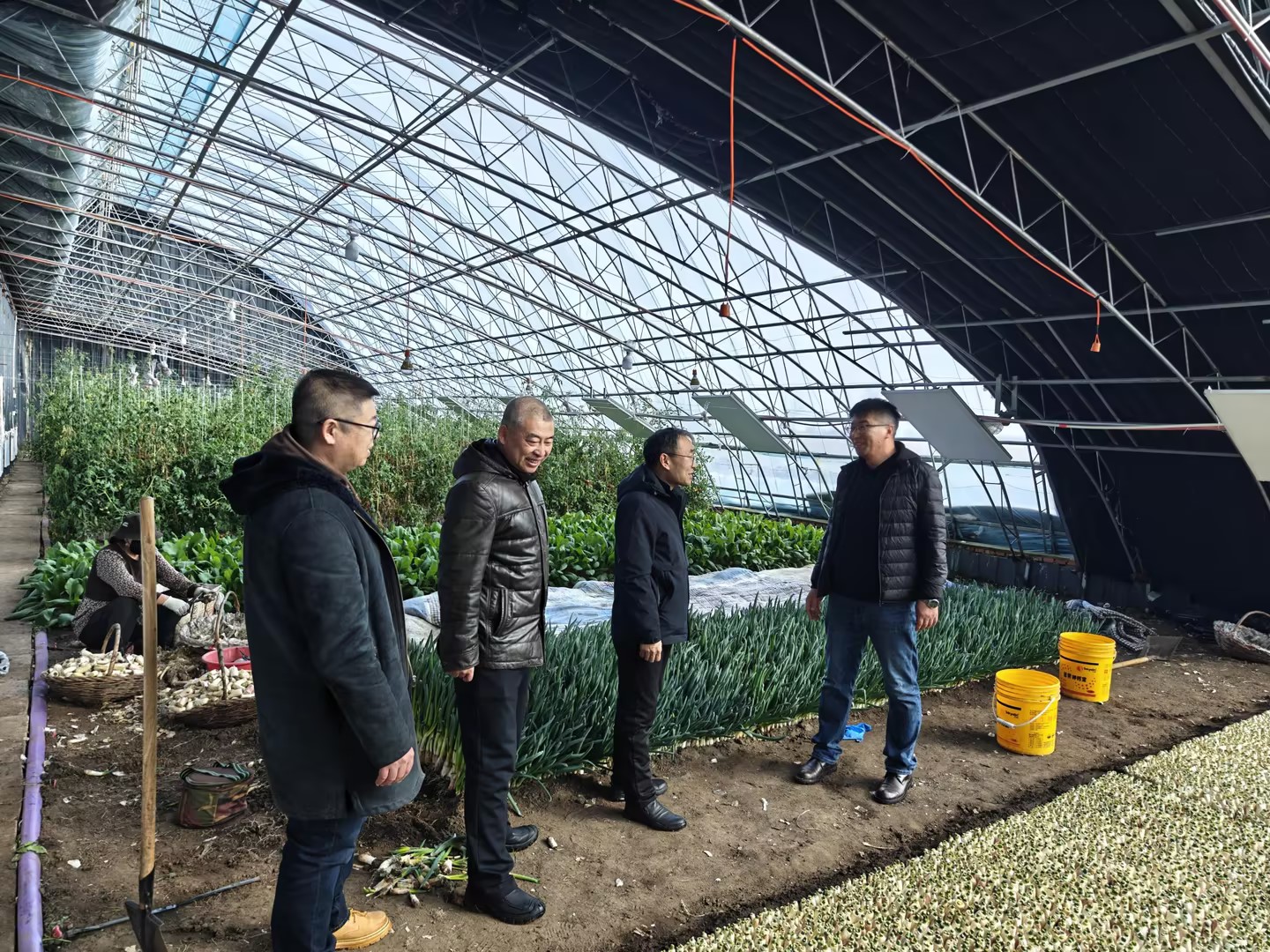 建筑工程学院副院长、内蒙古自治区“碳减排视角下高寒地区粉煤灰资源化节能增温关键技术研究与应用”重点研发和成果转化计划项目负责人方明伟介绍了研发的节能保温材料的特点、基地的特殊设施农业的保温围护结构及基地冬季农作物种植情况。两学院针对地方农业生产服务,特别是基于智慧农业技术的有关研究达成了共识,双方将结合各自的学科专业优势,推进相关领域的协作研究,进一步增强服务地方农业产业建设的能力。