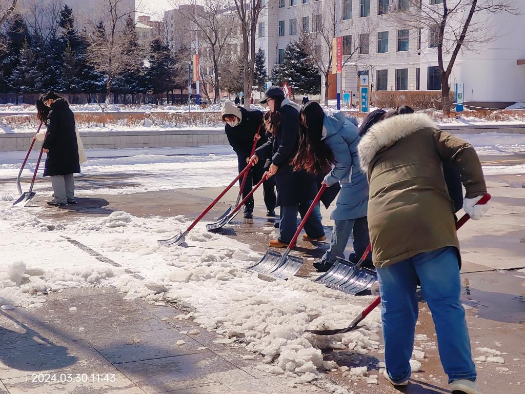 本次清雪除冰活动的顺利开展,不仅使校园变得整洁,更彰显了我院学子不畏严寒、吃苦耐劳的青春热情和服务师生、心系校园的责任担当,增强了学生们精神文明建设和劳动服务意识。希望学院学子能够在日后的学习生活中,永葆初心,团结奋进,砥砺前行,书写更加华丽的人生篇章。
