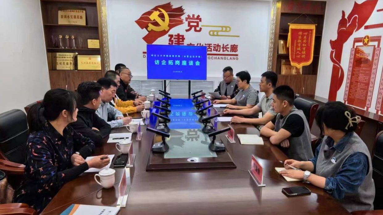 为扎实做好访企拓岗促就业专项行动,助力毕业生高质量就业,进一步了解用人单位对毕业生需求和专业能力素质要求,4月1日下午,体育学院(冰雪运动学院)党总支书记胡日查毕力格一行7人赴内蒙古雪上项目运动协会开展访企拓岗促就业活动并座谈。呼和浩特体育中心副主任、呼和浩特市冰雪和水上运动中心主任许宽,内蒙古雪上项目运动协会会长韩金洋等相关人员参加了座谈交流会。