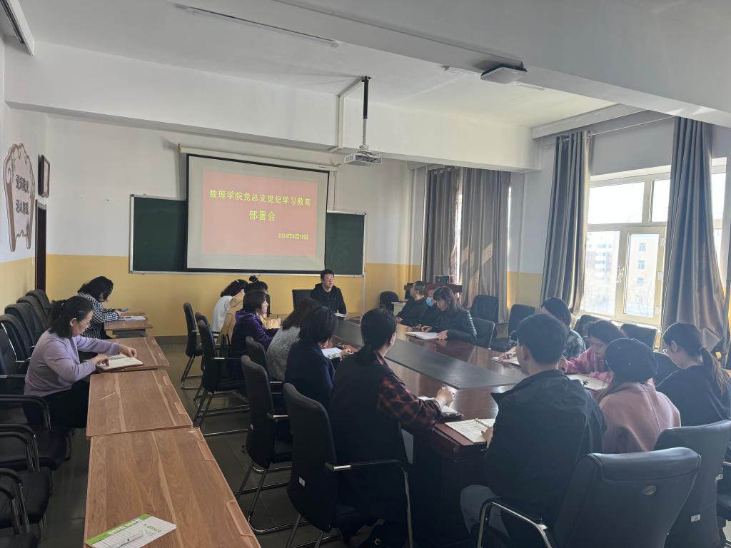 4月18日上午,数理学院党总支召开党纪学习教育部署会,传达学习中央、自治区党委、呼伦贝尔市委和bat365中文官方网站关于开展党纪学习教育的工作要求,部署学院党纪学习教育工作。数理学院党总支书记杨巧智主持会议,学院全体党员参加会议。