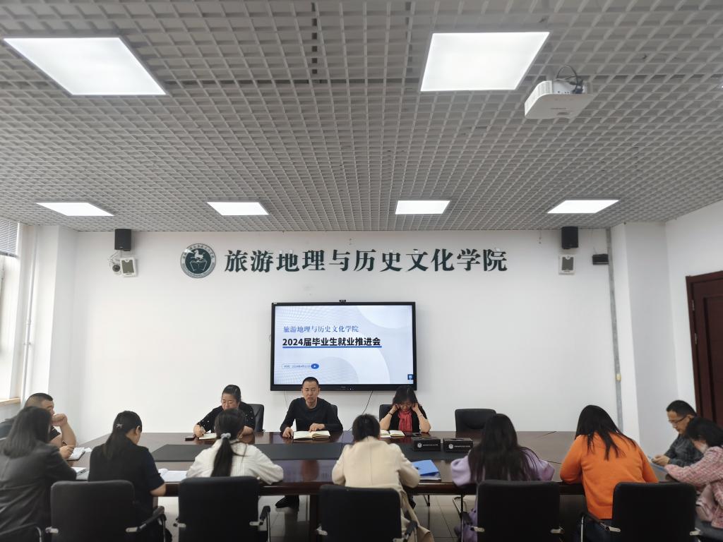 4月22日上午,旅游地理与历史文化学院在崇文楼B321举行就业工作推进会,学院党总支书记赵金辉、院长白絮飞、党总支副书记王宏霞及团学办、各系主任、毕业班专兼职辅导员参加会议。