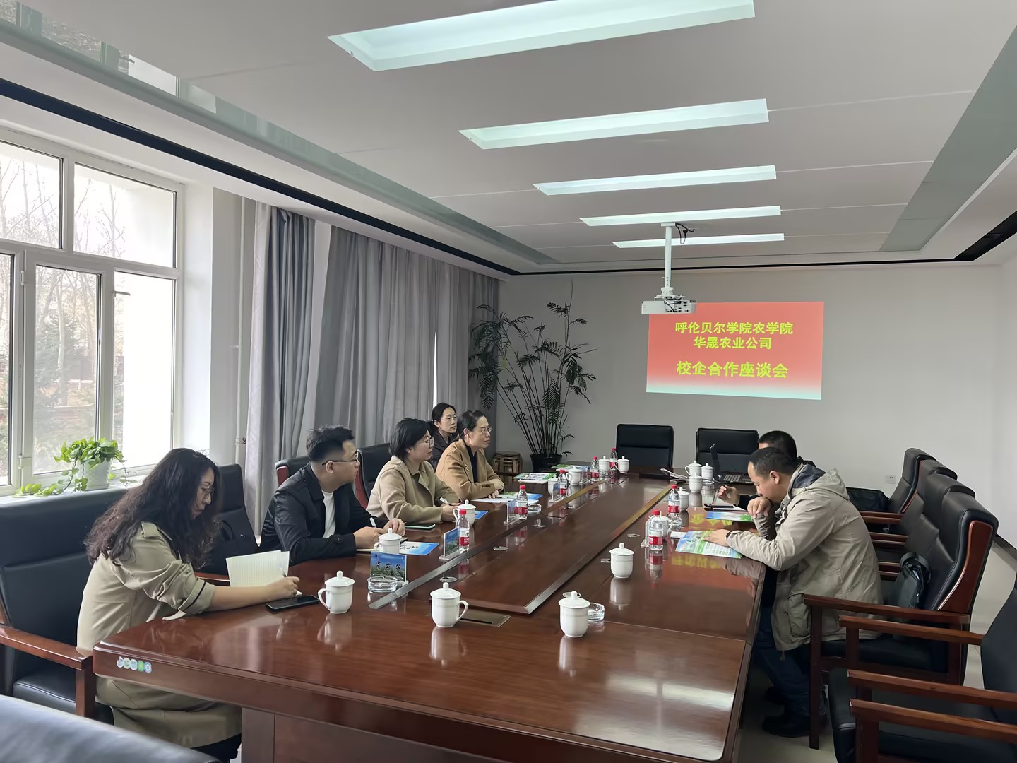 座谈会上,汤存山详细介绍了企业文化、发展理念、公司基本情况及对农业人才的需求。郭晶从师资队伍、党建融合、就业需求等方面,姜超从人才培养、产学研基地建设、科研合作等方面介绍了学院的基本情况及与公司的合作意向。校企双方进行了深入的交流和探讨,达成了多项合作共识。