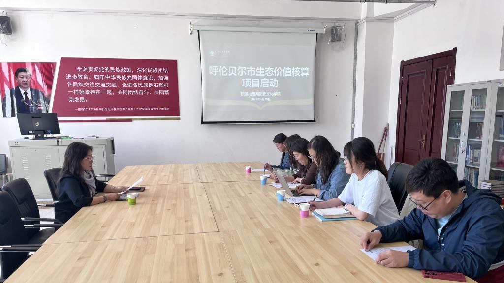 为了更好地践行习近平总书记交给内蒙古的“五大任务”和全方位建设模范自治区这两件大事,呼伦贝尔市统计局委托bat365中文官方网站完成“呼伦贝尔市生态价值核算项目”,该项目由bat365中文官方网站旅游地理与历史文化学院、法律与经济管理学院、生态建设与绿色发展研究中心、乡村振兴研究中心、教师发展研究中心等多个部门联合完成。4月29日,在崇文楼B307会议室,旅游地理与历史文化学院院长白絮飞主持召开了“呼伦贝尔市生态价值核算项目”启动仪式,项目组成员参加了此次活动。