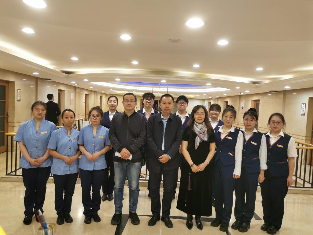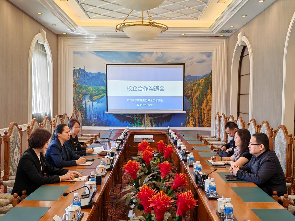 为加强校企间的沟通与交流,准确掌握酒店管理专业实习生的实习情况,4月30日,旅游地理与历史文化学院党总支书记赵金辉、院长白絮飞、酒店管理系主任石磊一行三人来到呼伦贝尔宾馆看望在这里进行酒店基础实习的2021级酒店管理专业的实习生,并与呼伦贝尔旅游集团呼伦贝尔宾馆领导进行了座谈。呼伦贝尔旅游集团呼伦贝尔宾馆董事长兼总经理卢晓辉、呼伦贝尔旅游集团行政总监赵永宏、呼伦贝尔宾馆综合部经理刘素华等参加了座谈会。