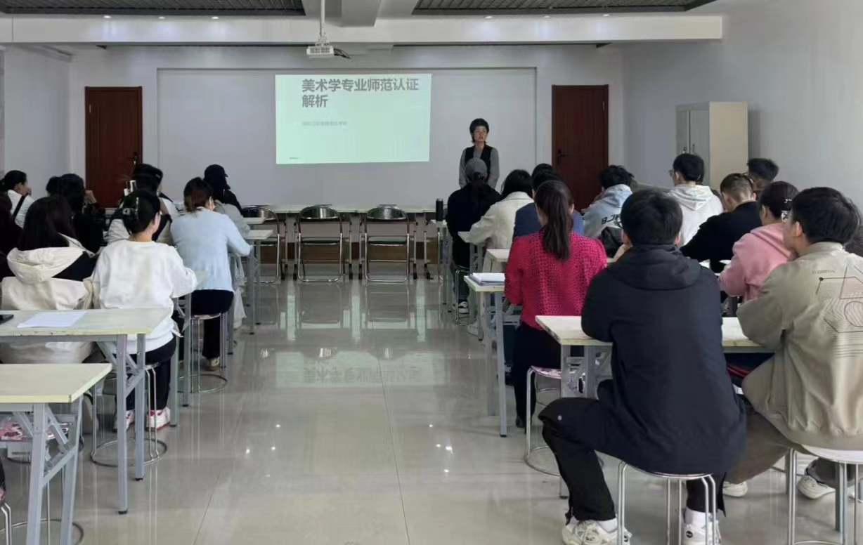 培训会上,张晶介绍了师范类专业认证对美术学科建设的重要意义,对《人才培养方案》进行了讲解。深入剖析了师范类专业认证基本理念,强调了以社会需求为导向,以学生发展为中心的教育理念,并指出要通过完善评价体系,促进师范类专业教育质量的持续提升。
