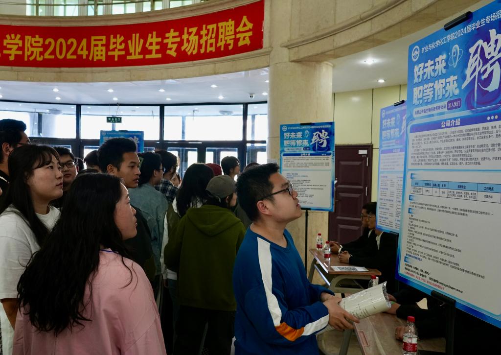 为了更好地搭建用人单位与毕业生的沟通桥梁,进一步推动学院2024届毕业生就业工作,5月7日上午,矿业与化学化工学院联合招生就业处,在科技楼一楼大厅举办“向光而行·航行万里”2024届毕业生专场招聘会,邀请中国五矿集团有限公司、东方希望包头稀土铝业有限责任公司等8家优质企业来学院招聘。