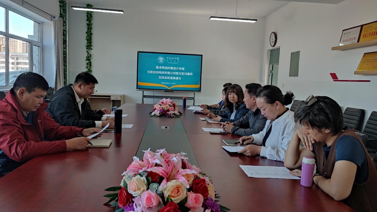 为进一步推动毕业生就业指导工作,帮助毕业生适应就业形势、熟悉就业政策、转变就业观念、增强择业意识,为学生提供实习和就业平台,5月29日,美术学院环境设计专业与北京嘉悦科技有限公司实习实训基地开展交流就业推进会。北京嘉悦科技有限公司实习实训基地负责人孙浩,美术学院党总支书记巴达日呼、副书记张巍巍,环境设计专业系主任潘晶以及环境设计专业全体教师参加交流会。