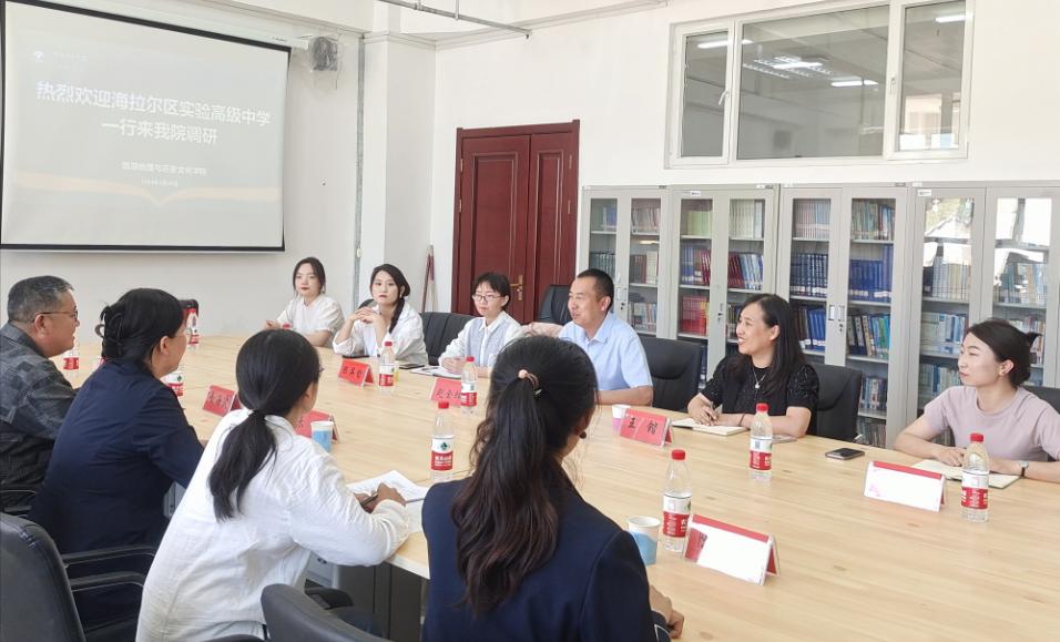 5月29日下午,海拉尔区实验高级中学书记白海波、副校长张然一行5人到旅游地理与历史文化学院进行座谈交流。学院党总支书记赵金辉、实习实训中心主任敖程程等相关老师一同参加此次活动。