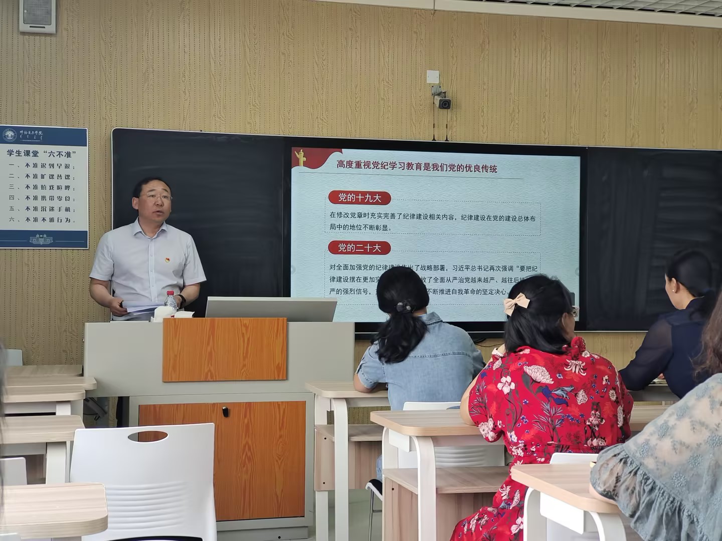 为进一步推进党纪学习教育走深走实,见行见效,6月5日下午,教育学院党总支组织开展党纪学习教育专题党课。学院党总支书记海江以《严的基调全面加强纪律建设》为题,为全体教师党员讲授了党课。