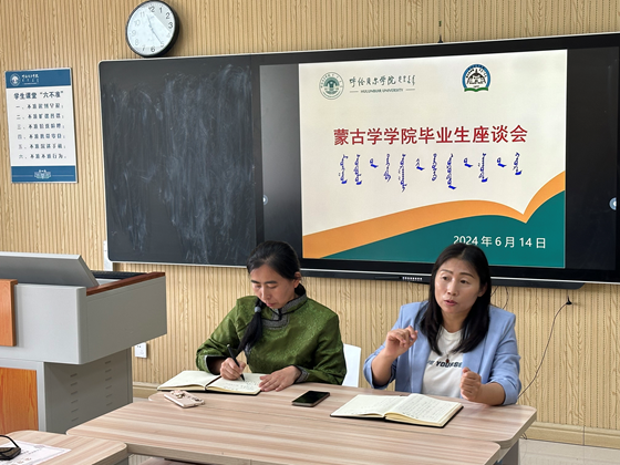 为深入了解毕业生对于人才培养、课程设置、学风建设、学生管理服务等方面的意见和建议,为学院新一轮人才培养方案修订提供宝贵依据,6月14日上午,蒙古学学院在崇文楼B228教室举办2024届毕业生座谈会。蒙古学学院党总支副书记孔春艳、副院长小花以及2024届毕业生代表参加座谈会。
